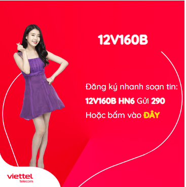 Hiện nay Viettel ra mắt rất nhiều cổng thông tin tiếp nhập đăng ký gói 12V160B Viettel để giúp khách hàng dễ dàng tìm hiểu và đăng ký sử dụng. Bạn có thể soạn tin nhắn theo cú pháp 12V160B HN6 gửi 290
