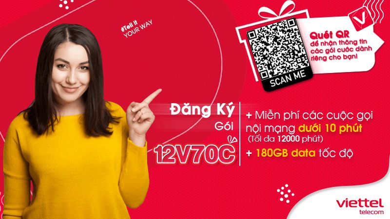 Hiện nay gói cước 12V70C của Viettel là một trong các gói khuyến mãi mới được nhà mạng cho ra đời dành cho thuê bao di động Viettel may mắn nằm trong danh sách khuyến mãi của gói cước.